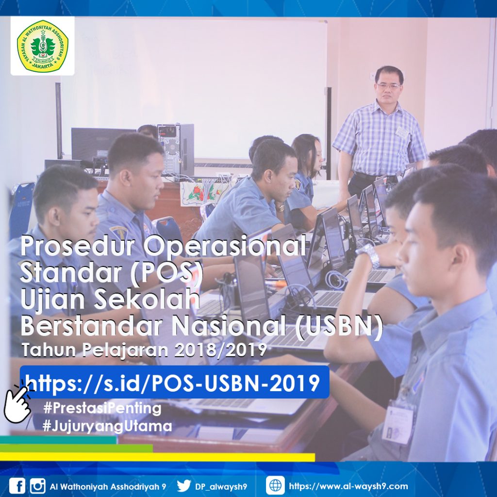 Pemerintah kembali akan melaksanakan Ujian Sekolah Berstandar Nasional (USBN) dan Ujian Nasional (UN) pada tahun 2019. Sehubungan dengan hal tersebut, melalui surat edaran nomor 0101/SDAR/BSNP/XI/2018 (unduh disini), pada hari Kamis (29/11/2018), BSNP menetapkan POS Ujian Sekolah Berstandar Nasional (USBN) dan Ujian Nasional (UN) tahun 2019. Penetapan POS tersebut dimuat dalam Keputusan BSNP Nomor 0048/P/BSNP/XI/2018 untuk POS USBN dan Nomor 0047/P/BSNP/XI/2018 untuk POS UN.