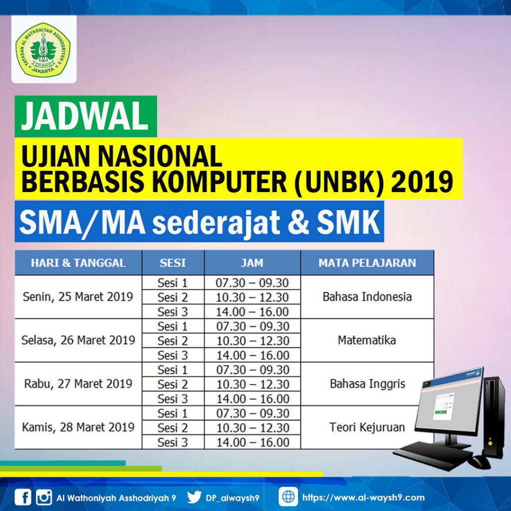 Jadwal pelaksanaan UNBK SMK