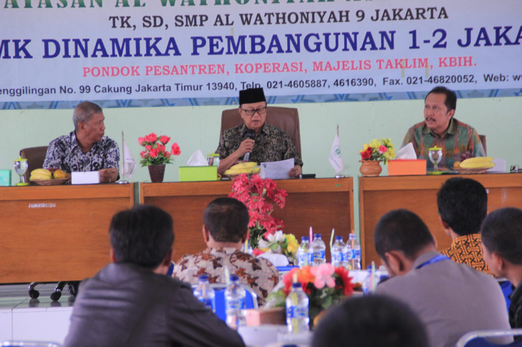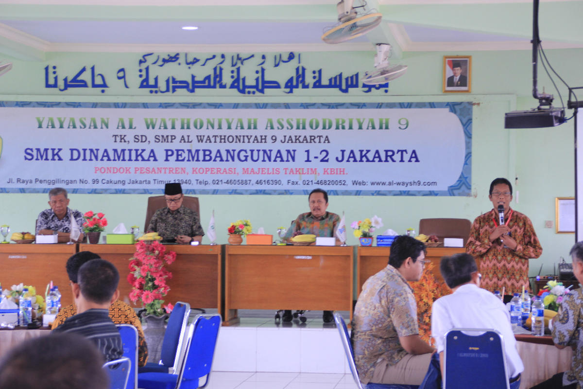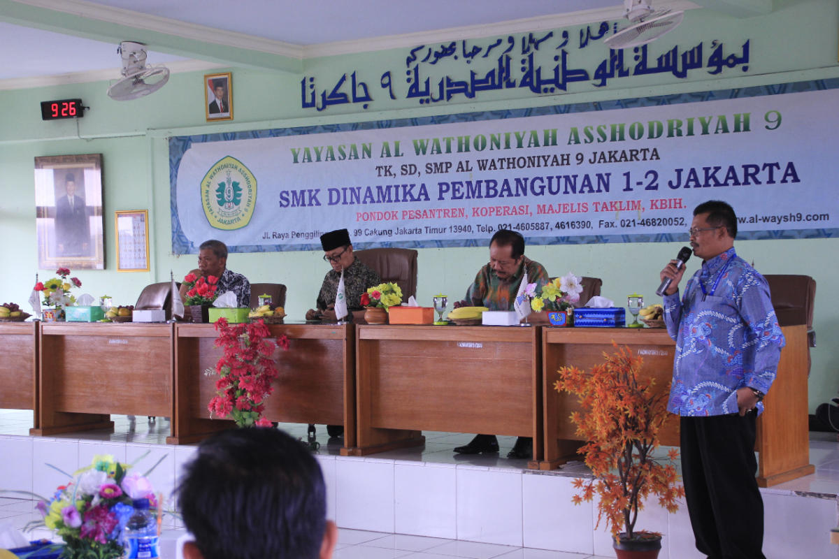 Pimpinan Yayasan Al Wathoniyah Asshodriyah 9 Drs. KH. A. Shodri HM yang turut hadir dan memberikan sambutan dalam pertemuan ini mengucapkan banyak terimakasih kepada Majelis Sekolah, Perwakilan dari masing-masing Perusahaan dan juga Pengawas SMK DKI Jakarta Drs. Sugeng Priyana, M.M. dan Kasi Dikmen Wilayah 1 Jakarta Timur yang Alhamdulillah sudah berkenan hadir di sekolah kami. “Harapan kami semoga kerjasama yang telah lama kita jalin ini akan semakin erat terlebih dengan adanya Instruksi Presiden Nomor 9 Tahun 2016 tentang Revitalisasi SMK ini mendorong kita semua dari unsur dunia pendidikan dan industri, yang insyallah menghasilkan lulusan SMK yang siap kerja. Tidak hanya siap kerja tapi kreatif dan inovatif”.