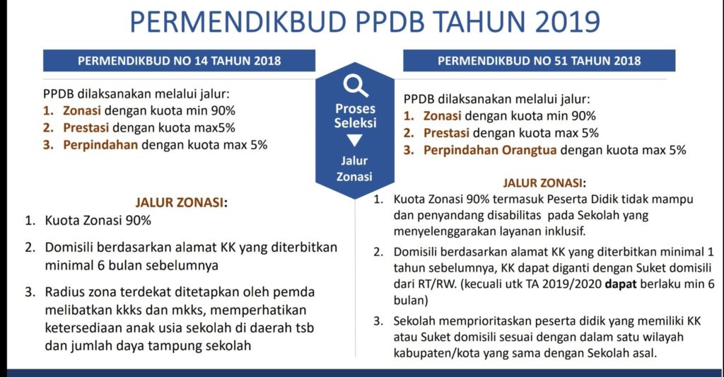 Salah satu yg menjadi catatan dari pelaksanaan PPDB tahun lalu adalah mengenai permasalahan diberlakukannya SKTM. Tahun ini syarat SKTM tidak diberlakukan. Mendikbud berharap ada perubahan pola penerimaan pada tahun ini, bukan siswa yang mendaftar tapi sekolah yang aktif mencari peserta didik, Tidak ada perubahan signifikan dalam Permendikbud No.51 Tahun 2018, hanya dibuat lebih rigid karena masih adanya penyelewengan dari pelaksanaan Permendikbud No.14 Tahun 2018.