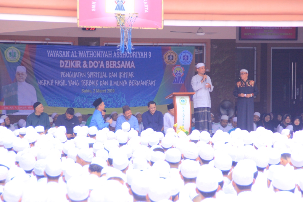 Yayasan Al Wathoniyah Asshodriyah 9 menggelar acara Dzikir dan Doa bersama menjelang pelaksanaan Kegiatan Ujian Nasional dan Ujian Sekolah, kegiatan yang berlangsung pada hari sabtu (02/03) di lapangan Gedung C, Tema Dzikir dan Doa bersama tahun ini adalah “Penguatan Spiritual dan Ikhtiar Meraih Hasil yang Terbaik dan Ilmu Bermanfaat”.